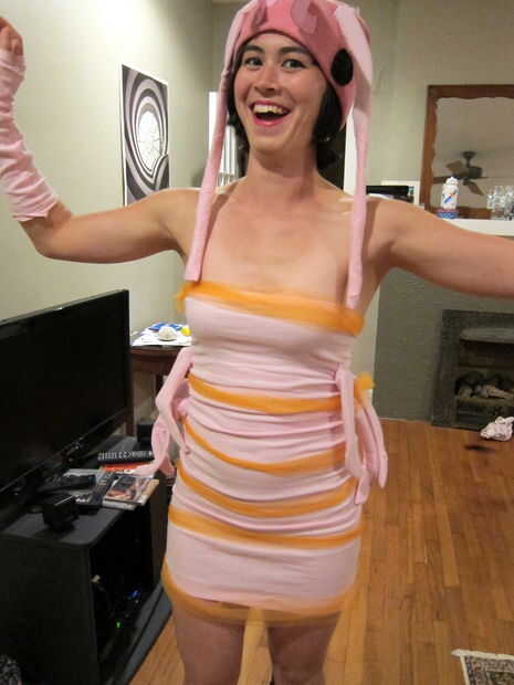 Un disfraz muy fácil para el bebé que puede terminar en una tarde.Hice este año pasado y sólo tenemos una imagen del proyecto en medio de la terminación.Materiales para el Tempura de camarones:Pijamas de bebé/mono, preferiblemente con cremallera en e