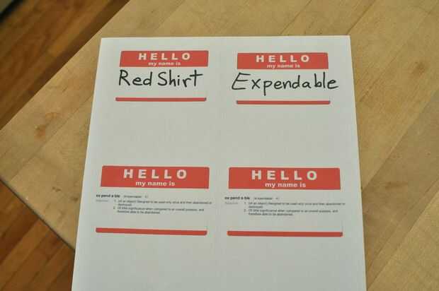 Use un marcador para rellenar un nombre. Mis favoritos son "Camisas rojas" y "Prescindibles", pero tal vez podría venir para arriba con algo incluso mejor.