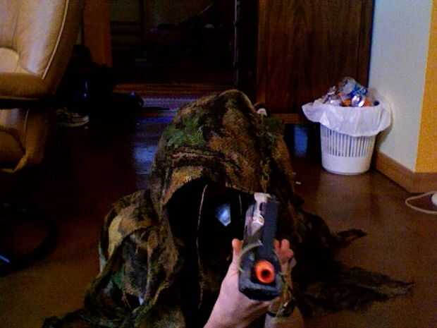 Un traje Ghillie es el camuflaje definitivo y puede ser utilizado en una variedad de escenarios; airsoft, paintball, caza, furtiva, etc.. Cuando llega el mes de abril, se puede utilizar para... BROMAS! Así que cuando haces una zanja de dong del ding