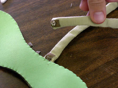 En la última versión de titiritero que decidimos hacer el sensor desmontable por lo que podríamos intercambiar y también porque una forma conveniente para fijar el circuito conductor elástico. Atamos poppers de máquina a ambos lados de los sensores, así como a los extremos de los rastros conductores. Fabrican los sensores en tres longitudes diferentes: