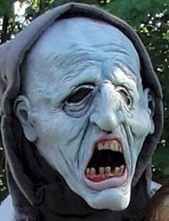 La máscara de goma elegimos cuestan $9 nuevo y es el artículo más caro en el traje. Inserta la manga de aislamiento de la pipa en la máscara (hace un excelente cuello) y llena el área vacío de la cabeza de espuma de expansión.  A través de varias horas que rodamos expansión espuma en la nariz y cada apertura disponible.  Debido a la falta de flujo de aire, tomó un par de días para que la espuma se seque por completo.  La espuma se filtraron hacia fuera a través de los ojos, nariz y otros orificios pero esperando que se seque y había escogido.  Tuvimos que volver a pintar los ojos debido a que el tejido del ojo a amarillear la espuma amarilla.  La cabeza es sólida como una roca y es muy ligero. El manguito de aislamiento de núcleo utilizados dentro de la cabeza se desliza perfectamente hasta el cuello de PVC.