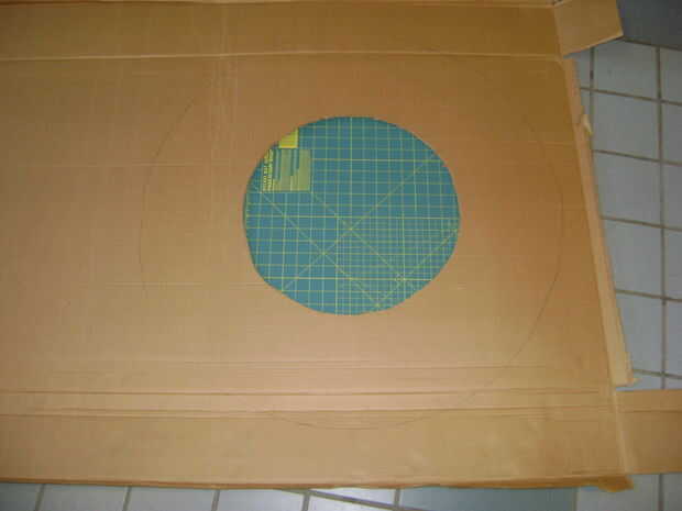 4. Utilice el cuchillo para uso general (T2) para cortar el cartón a lo largo de las líneas y empuje hacia afuera del círculo y el círculo más grande