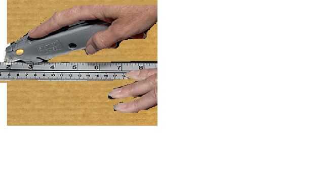 2. corte a lo largo de las líneas con una navaja (T2) encima de la almohadilla de corte (T1).