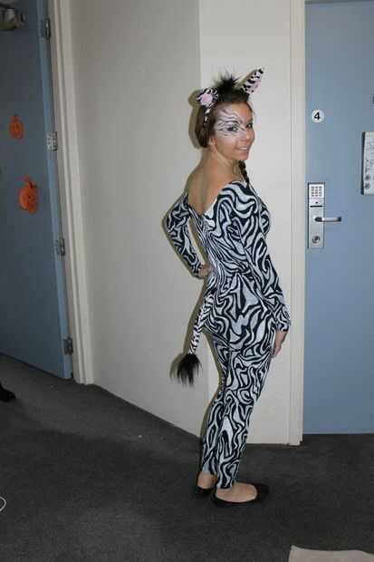 Después de horas y horas de pintura finalmente acabó el traje. Las orejas compré fueron una banda de cabeza, si haces tu propia sugerir el uso de una diadema también. Para la cola no quería meter un agujero en el spandex para sujetar con un alfiler. Terminé de atar alrededor de mi cintura con la línea de pesca. En retrospectiva, ir con el perno de seguridad, la línea de pesca sobre mi traje va al baño una pesadilla total.