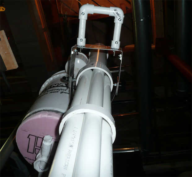 Marca en el cañón de munición donde se cruza la pieza de acero y con una dremel, corte una ranura para el acero. Deslice el cañón hacia abajo sobre el acero hasta que es una distancia adecuada de la Asamblea de barril, esto también es bastante subjetivo pero la mía es aproximadamente 2 1/2" debajo del Asamblea de barril.