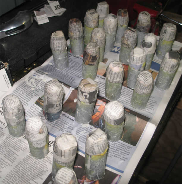Yo, sin embargo, consiguió perezoso a medio camino a través y decidido por el bien de mi propia cordura y el tiempo que sólo llenaría la parte delantera de la bandolera, que tuvo 24 balas. Yo recomendaría considerar esto como sentarse abajo con una espalda cubierta de balas de tubería de PVC es muy incómodo, sólo cubre la parte delantera es mucho más fácil holgazanear el traje.