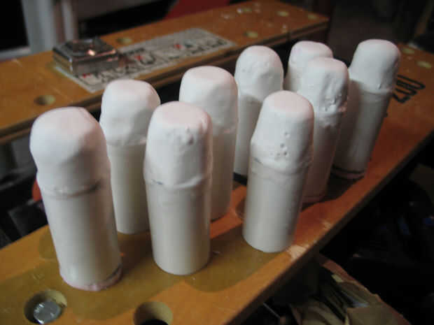 Muchas partes de este proceso han sido difíciles, si porque eran físicamente difícil como con la rosca de la varilla de 5/16" a través del orificio de 1/4" o mentalmente difícil como con averiguar cómo hacerlo básicamente cada parte de esta. Las balas, sin embargo, eran la única parte que realmente tediosa.