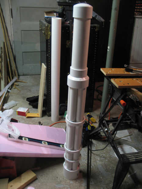 De 3" tubería es bastante subjetivo, hice mío alrededor de dos pies, pero esa decisión basada en la altura total. Con el montaje de barril sentarse supresor flash lateral en el piso quería la parte posterior de la cosa entera a estar al nivel de la axila que para mí era 49". Dependiendo de qué tan alto desea que sea en relación a sí mismo puede acortar o alargar el tubo de 3", aunque si lo cambie de que demasiado también puede cambiar la longitud 1 1/4" barriles por lo que no se ve fuera de proporción.