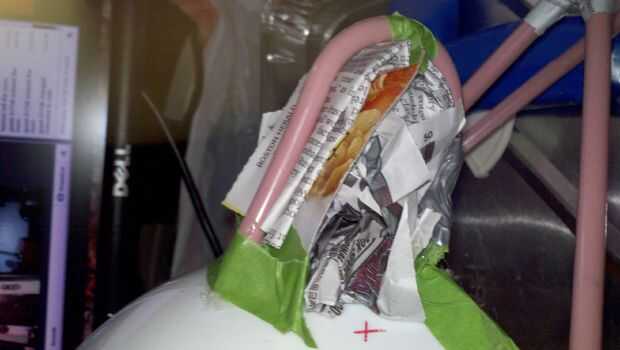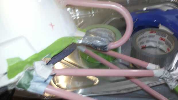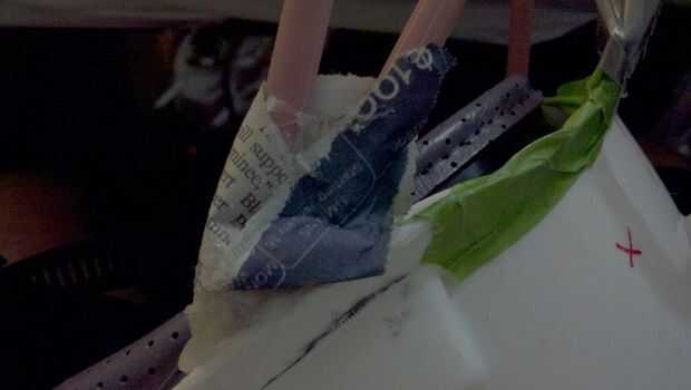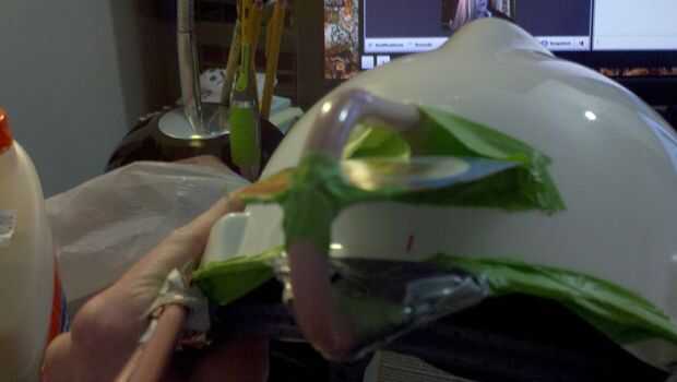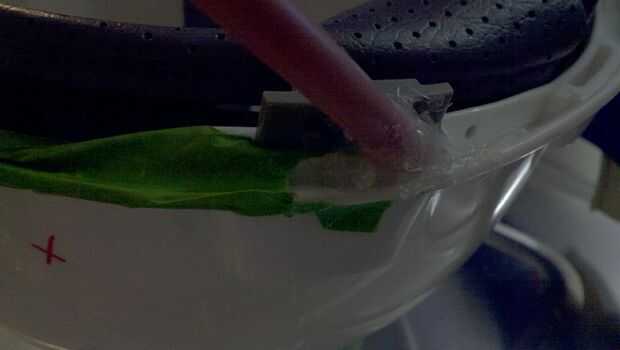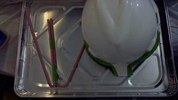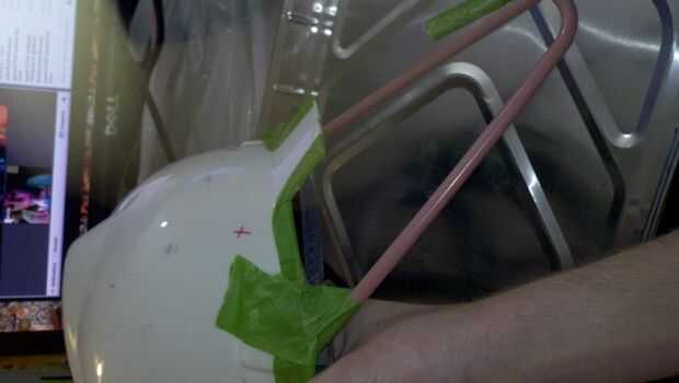 Tomé el sombrero duro y cortar el borde salvo lo suficiente para una nariz descanse sobre como apoyo. Entonces tomé la suspensión y corte por la mitad, pero dejó los 45 * ángulos en los extremos de la "barbilla de tope". I luego usa el gancho en la parte superior de la percha y caliente había pegado de la nariz. Por favor ver las fotos que he adjuntado ayudarán a aclarar lo que dice Im.