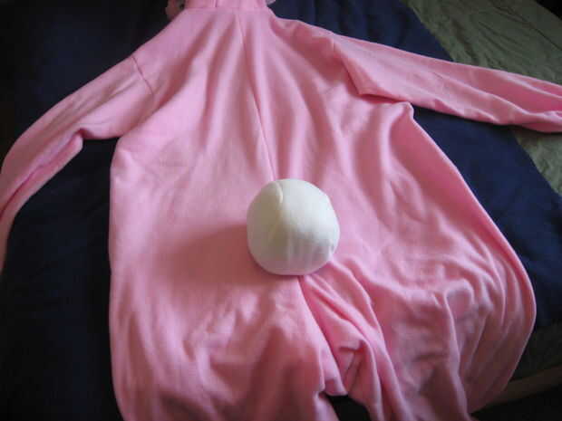 Se hizo una cola blanca esponjosa y cubrió a seguridad en el lugar.  (Es removible en caso de que necesite sentarse.)