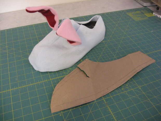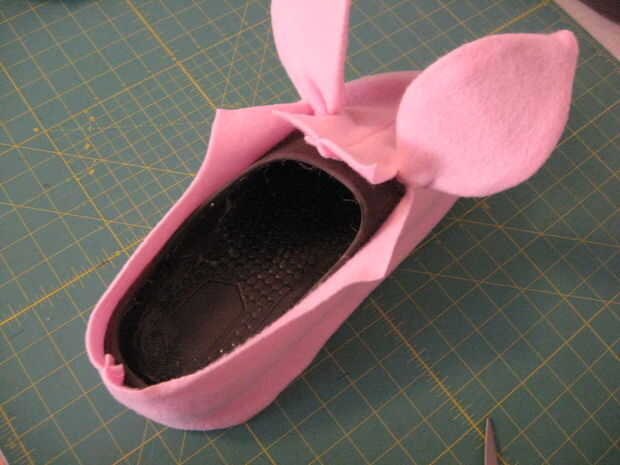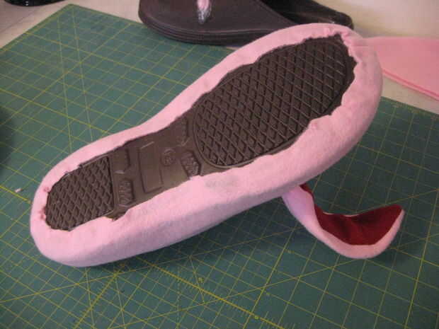 Después se hizo un patrón y una cubierta práctica fue encontrada para ser adecuada, las cubiertas fueron hechas para cada zapato. Éstos eran estirados y pegados en lugar.