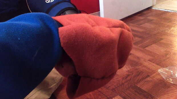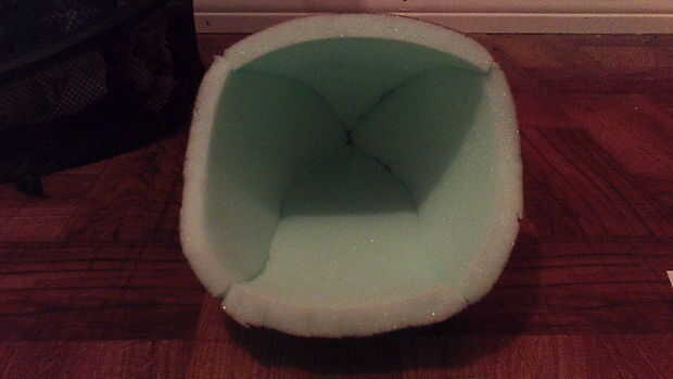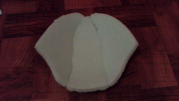 La cola fue cerrada con un corte plano de espuma de 1/2", y luego pegué el elástico a la espalda para hacer los lazos de la correa.