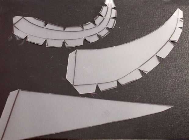 Este patrón debe rastrearse en el reparto verdadero - las hojas de plástico de carpetas. Agregar aproximadamente 0,5-1 frontera cm alrededor para pista las piezas juntos. (Ilustración2)