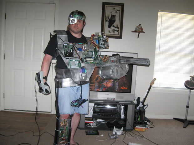 El plan para este disfraz es para una película de casa mis hermanos y yo estamos haciendo. Es una secuela de uno de nuestros anteriores trabajos. Este personaje murió realmente en el trabajo anterior que mencioné, pero decidimos traerlo de regreso como un cyborg.
