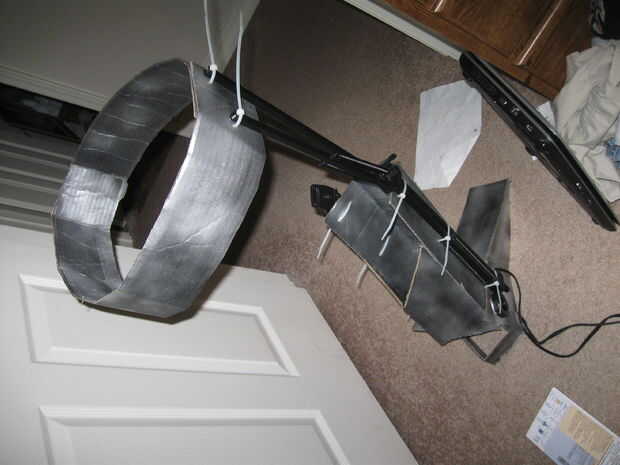 Entonces necesitaba hacer una rodilla. No estaba seguro de cómo hacerlo, hasta que me dieron un poco de inspiración mirando Forrest Gump. Decidí hacer una especie de sistema de ortesis de rodilla. Por suerte mi trabajo tenía unas lámparas de escritorio antiguo que estaban rotos y a tirar. Así que desmonté uno, y la bisagra en trabajó bien para mis propósitos. Como un bono adicional, tenía que los pies juntos mejor también.