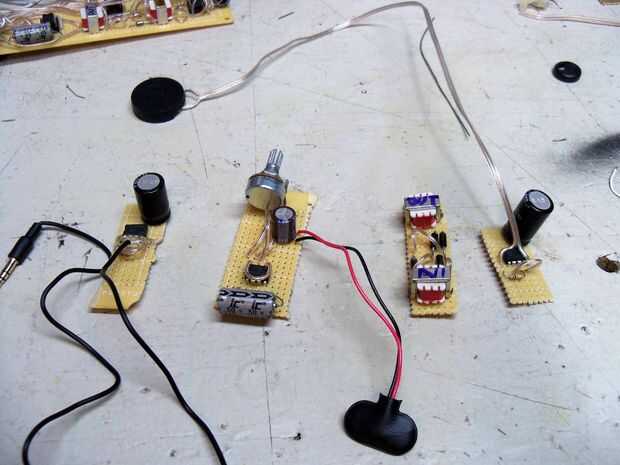 Las otras tres partes son todos los amplificadores. He utilizado una muy pelados abajo versión del circuito que killersquirrel11 usuario de instructables muestra aquí.
