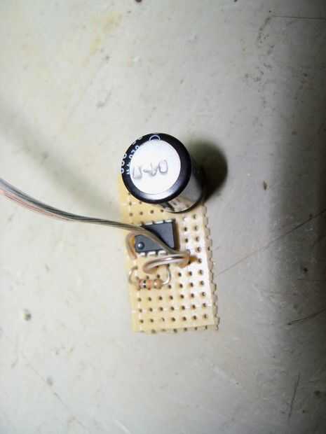 - Pin 5 conectado a + pierna de 220uf tapa, luego a la salida (uno de los cables a la placa del modulador)