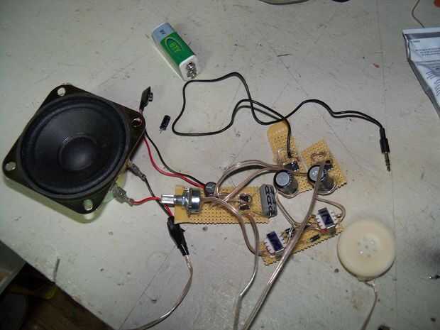 Este circuito es funcional, no bastante. Tiene algunas fallas que sospecho podría fijarse por alguien más conocedor de electrónica que yo mismo. Realmente sólo se rasga a través de baterías, sospecho que amplificar es demasiado para una sola nueve voltios. Además, la señal está muy sucia, pero no pude parece trabajar que--cada vez que se comenzó a jugar a alisa el sonido malditos republicanos hablar radio! Os maldicen Lars Larson!