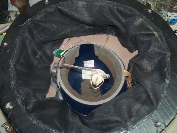 El altavoz entonces estuviera pegado a la sección frontal de malla, así al menos parece como la modulada voz venía de la parte delantera de la cúpula. Por último, pegué el casco de béisbol con su loco mezcolanza de la electrónica en la cúpula. Y finalmente lo hizo!