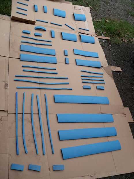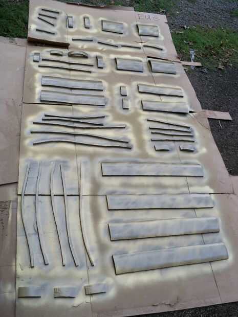El Dalekanium (una aleación especial creada por los Daleks) paneles fueron complicados también. Quería un material flexible que tenía algún bulto, así que sería resistente, como armadura. Colocaron sobre una estera de pilates, la espuma fue aproximadamente 1/2" grueso y muy flexible. Si yo no hubiera prisas en este punto, podría haber hecho mucho mejor, pero resulta que el material es difícil de cortar en línea recta--como usted cortar, tiene una tendencia a estirar. En lugar de un cuchillo de la caja fuerte que habría dado cortes agradables, suave, tuve que usar tijeras para mantener las líneas rectas. Lamentablemente, los cortes no tan lisa y suave como yo esperaba, pero otra vez, todavía parecían bastante bien. También, si hubiera tenido más tiempo habría hecho más estrecho cada placa y utiliza más de ellos.