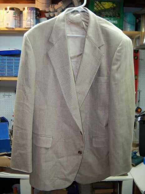 La chaqueta era el único que pude encontrar incluso cerca de mi tamaño que no era un color oscuro, y fue hecha de lana y bastante difusa. El problema con lana difuso es que no acepta spraypaint muy bien. Tuve que hacer 3-4 capas en lugar de sólo dos, y aun así no era casi tan oscuro como me hubiera gustado. Sin embargo, parecía bastante bueno, sólo tomó más trabajo que yo quería!