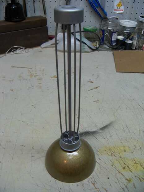Para el brazo del manipulador, en lugar de utilizar un émbolo real, opté por construir algo un poco más elegante. Corte la sección bol un vaso de coctel y perforar un agujero en el centro, luego había pintada de negro. También perforar un agujero en el centro de la semiesfera un gran ornamento plástico y había pintado ese oro. I utilizar pegamento caliente para fijar a cada extremo de mi barra de metal (con algunos que se pega a través del hemisferio oro, para usar como un mango) y había rematado con un epoxi.