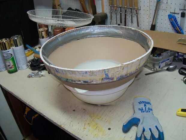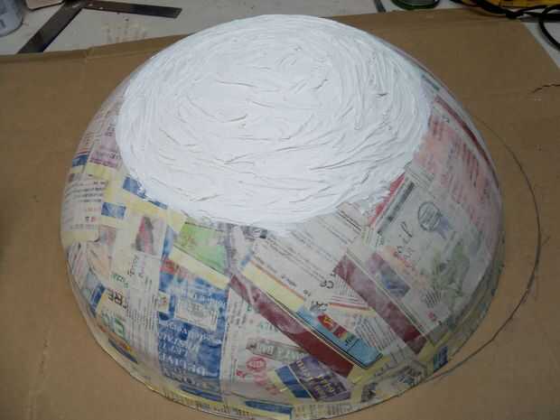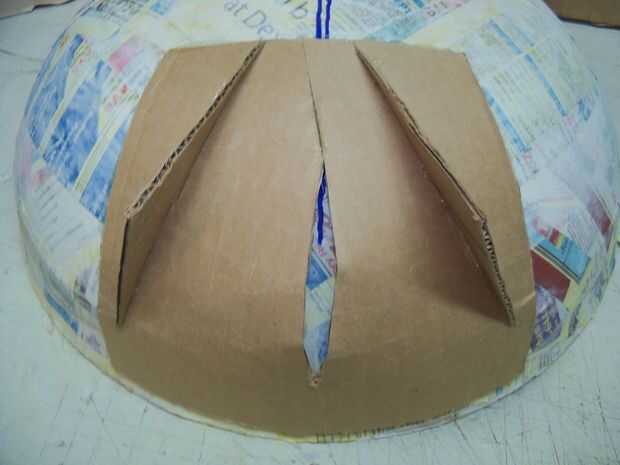 Papel mached todo. Una vez que estaba seco (¡ gracias Shianne!) la parte superior se había hundido hacia abajo un poco, usé el compuesto de juntas para abultar para arriba. Cuando durante la noche que seca, I lija suave y añade una última capa de papel maché.