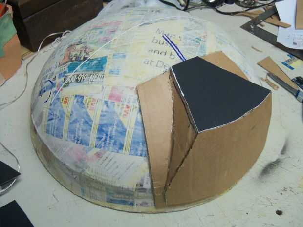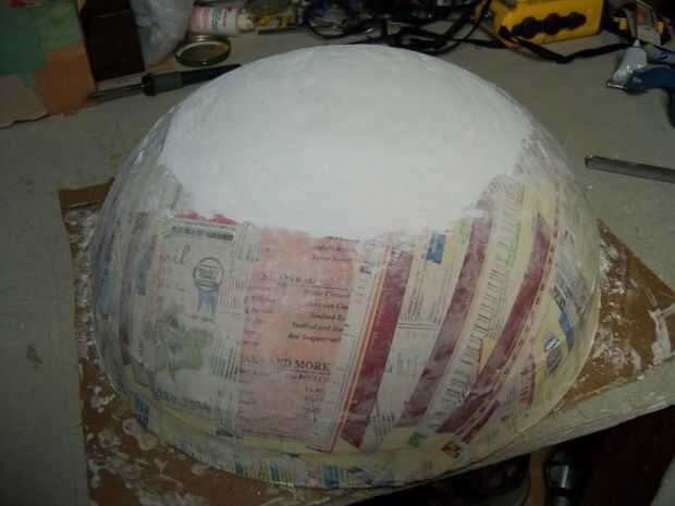 Resulta que un liso, redonda cúpula es realmente muy difícil en papel maché. Al parecer los constructores reales de Dalek esculpen una cúpula de barro y hacen un reparto de eso, pero como que no tengo los recursos para un proceso de varios pasos. He intentado un par de métodos diferentes para diversos grados de frustración y pérdida de materiales, tiempo y dinero, pero probablemente se podría repetir el método final con buenos resultados.
