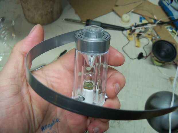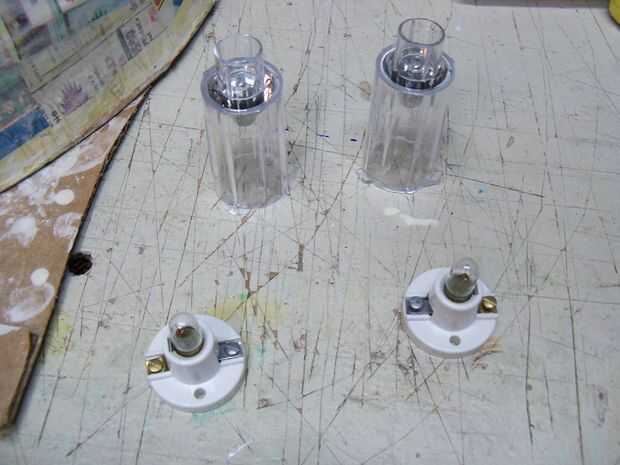 Las luces de la cúpula del edificio fue sorprendentemente fácil, y creo que vea muy bien. Usé los difusores de luz de un par de luces solares, que me caliente pegado a los titulares de un par de viejas bombillas incandescentes. Envuelve cada una en tiras de zinc, pero podría utilizar cualquier metal delgado y flexible, como el corte de una lata de soda de las tiras. ¿Por qué tengo las bombillas incandescentes viejas y tiras de zinc? Porque la ciencia, es por eso. También, muchas gracias a mi amigo Loren por la donación de la electrónica de la vieja escuela!