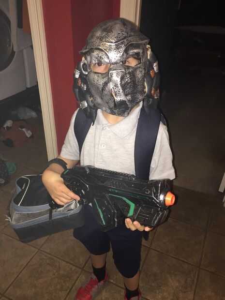 esto es un traje de depredador de niños tamaño para ir con el traje de Alien xenomorfo que hicimos anteriormente. Lamentablemente no hago la mascara de depredador de goma, mi hermano ya me ha dado dolor sobre él, pero con el tiempo funcionando hacia