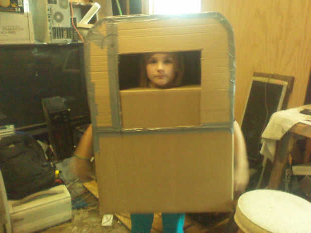 yo estaba atado por tiempo y dinero para un disfraz de Halloween, así que decidí ir de vieja escuela y ser creativo con un par de cajas, papel de construcción y sharpie. Si eres capaz, las cajas de costura juntos hace el traje mucho más durable.Paso