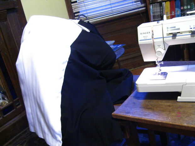Los pantalones eran un poco más complicados debido a la cremallera. Si usted decide hacer esto, sólo tenga en cuenta que usted necesita para cuidadosamente quitar la cremallera. Por ejemplo, la mitad derecha de mi traje es negro, lo que significa es el blanco de la mitad de la mosca que se cierra sobre la cremallera. Así mantuve la cremallera de mi pantalón negro . Dejó cosido en el lado derecho y cuidadosamente liberados desde el lado izquierdo, luego cosió parte de la cremallera en la mosca de los pantalones blancos al ponerlos juntos. Es una solución fácil, pero algo que tendrá que tener en cuenta si haces algo como esto. No vas a querer combinar las mitades de dos cremalleras! Sólo mantener intacta una cremallera.