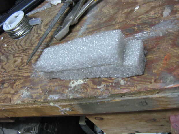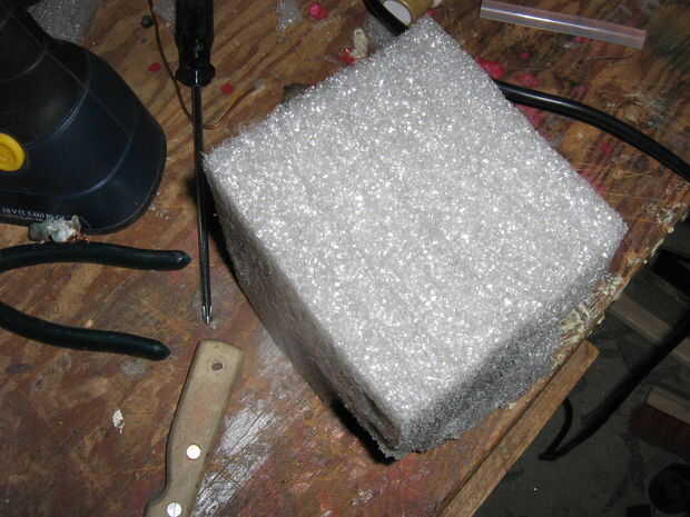 Usé un tipo diferente de espuma, de algún material de envases descartado del trabajo. Esta espuma fue una sensación más plástica y fue capaz de soportar más fácilmente el paso a paso/patadas, etc. entonces el corte aerosol espuma.