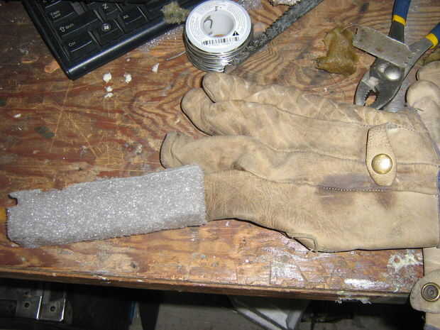 5. pegamento del zapato a la cavidad dentro del bloque de espuma en caliente. Ser liberal con el pegamento caliente, o puede salir su zapato desgaste mucho antes de lo previsto a continuación.