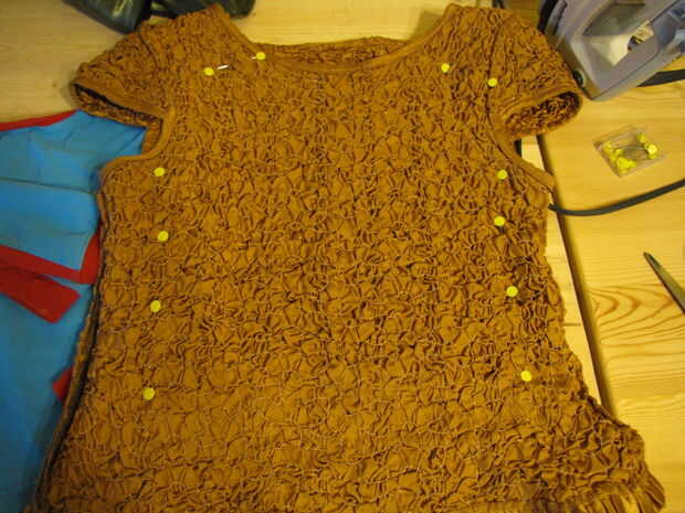 Tomé la camisa de mi hijo y tamaño de la camisa de la escala de dragón. Lo tomé en varias pulgadas hacia abajo de un lado con mi máquina de coser.