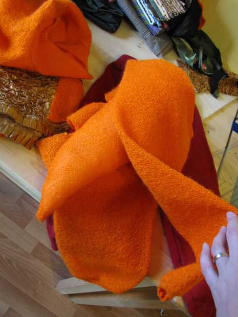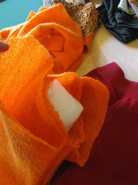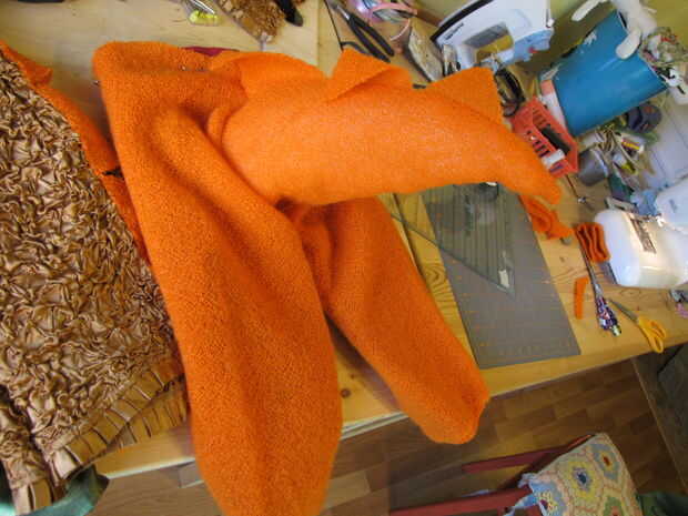 Una vez puse las mangas hacia fuera, terminó siendo una 'V'-en forma de área sobre la entrepierna con ningún suéter en él. Esto estaba bien, y la cola cubiertos de la parte posterior solo cosí una 'V'-en forma de pedazo de Jersey sobre el frente. Esto tomó un poco de trasteo, pero la lana era elástico y perdonador, y se ve muy bien!