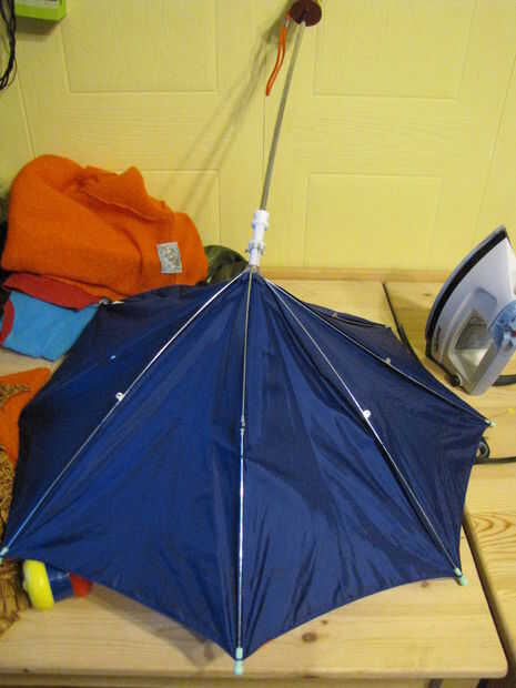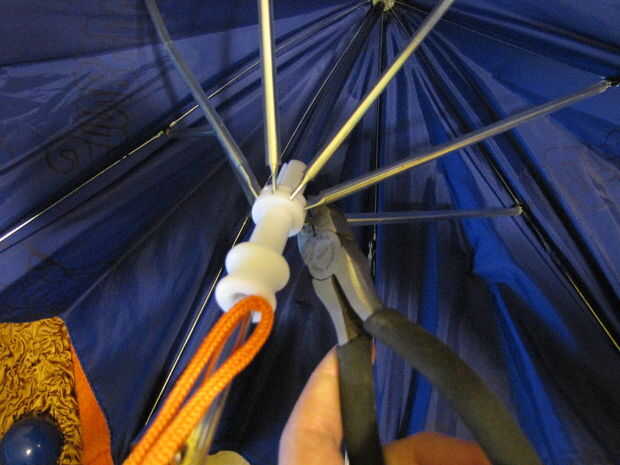 Obtener su paraguas y con unos alicates, corte las barras que mantienen de los bancos hacia fuera en el viento.