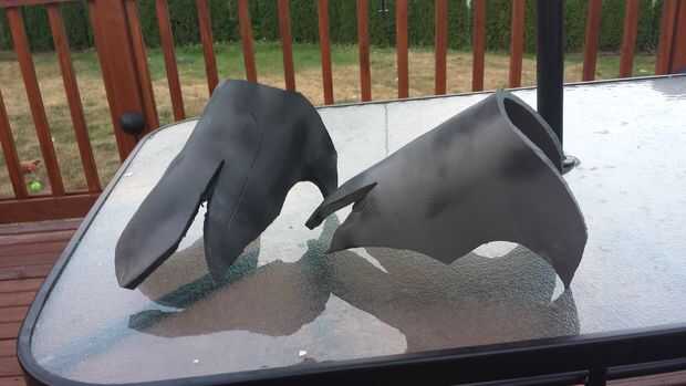 Pintado con Krylon. Velcro se une en la muñeca. Necesito agregar las garras al final de los dedos.