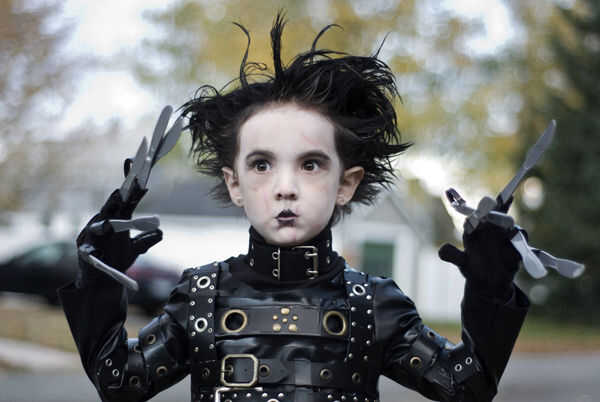 Este Costume de Edward Scissorhands se produjo debido a una semejanza llamativa al personaje de Johnny Depp en la película Edward Scissorhands. La ropa para el disfraz era sencilla con pantalón negro, un botón blanco de manga larga por camisa, negro