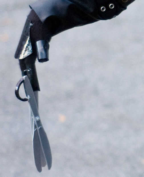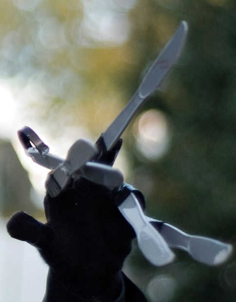 Por el dedo de puntero, tienes una real "tijera" con los cuchillos de mantequilla. No nos sentíamos era necesario a la ilusión que tienen todos los dedos tienen tijeras reales, pero nos gustó el atractivo visual de tener uno en cada mano.