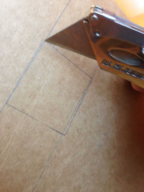 Cortar agujeros rectangulares ojo y probar en cabeza para la visibilidad.