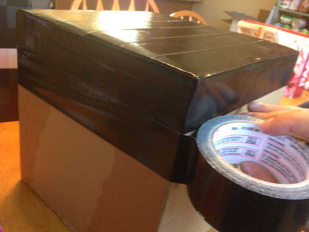 Una vez que la parte superior, comenzar lados utiliza rollo de cinta adhesiva de embalaje, corte cada fila y empezar la siguiente fila para mantener líneas incluso.