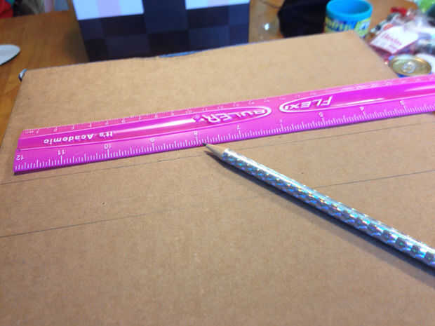 Con la caja en la cabeza, use una regla para medida al centro de ojos la mejor marca, tomar la caja de la cabeza y dibuje una línea en el cuadro de arriba y debajo de la marca para que los recortes se centrarán en los ojos.