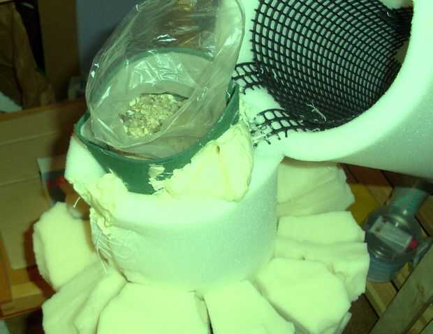 Después de llenar la arena, se veía como eso. Esperé un día para asegurarse que toda la espuma curada antes de quiten la arena.