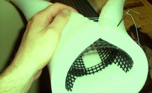 En la superficie de la empuñadura de plástico sujeta una estera de la espuma (espesor: 1,5 cm).