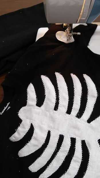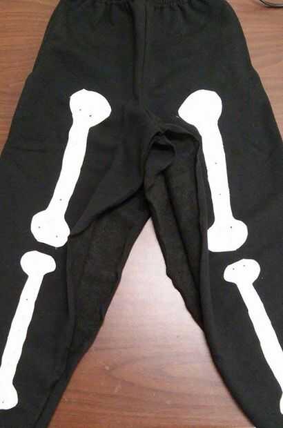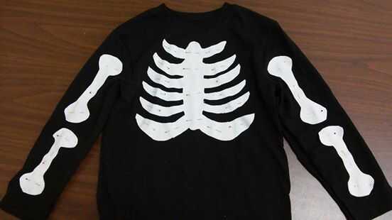 este es el traje de esqueleto que hice hace unos años. El maquillaje es de lápiz labial, delineador de ojos y crema hidratante blanco. El traje se hace de un cuello de tortuga negro de deporte negro y una tela negra.