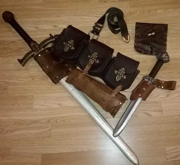 Aquí está usted terminar el look totalmente, Triple bolsa para dar la vuelta a la parte posterior (comprar de www.thevikingstore.co.uk), bolsa de cuero pequeña para ir a la derecha de la mano lado (me dieron esta como un presente con una corchea de flechas sino que puede ser comprado o hecho), el arma dos vainas para arma blanca (compra de www.thevikingstore.co.uk) podrían ser hecho tenías la plantilla derecha y un cinturón básico para mantenerlo todo junto. Un guantelete que sostendría la hoja de golpe que es sinónima de Assassins Creed, diferente en cada cuadro, ya que durante la Convención de Cosplay que acabo de hacer un básico marrón de cuero sin detalles, más tarde se deshizo de aquél y había rehecho mucho mejor.