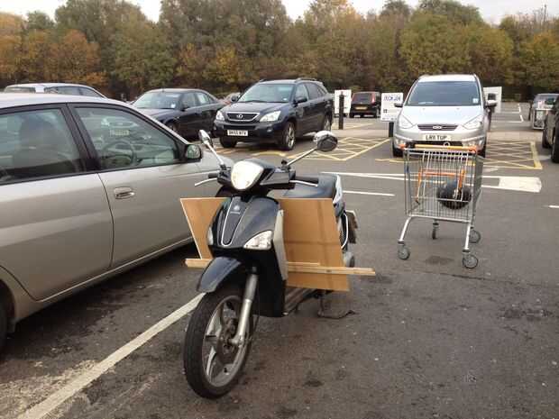 así que ahora tenía que conseguir un pedazo grande de cartón casa en mi moto: / mi propia culpa no creo nunca!