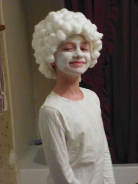 traje de la necesidad de un niño (o adulto) rápido?  Aquí está uno que se puede hacer en unos 5 minutos, utilizando artículos comunes del hogar.Se necesita:* una camisa de color sólida* un sombrero (mismo color que la camisa)* cinta (blanco para las