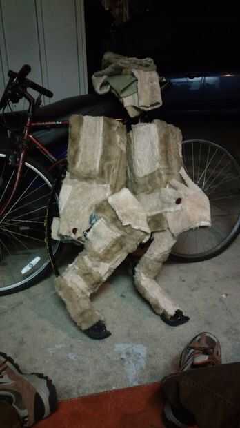 para crear este fenómeno óptico, uno necesita 2 trajes y el cuerpo! Consigue un traje de gorila o cualquier otro animal que te guste. Y un traje o ropa explorer, safari o cazador. Necesitamos crear dos mitades cuerpo falso! tronco o pecho. Es decir,